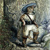 My husband Kort posed as the old man. I took an impromptu shot of him in our kitchen (with evidence of the disarray occupying that joyous space in our house). Obviously, I had to age him several years in the drawing and misty woods replaced the kitchen. The landscape was inspired by many visits to a local Japanese garden as well as other parks where neat little passageways tend to inspire my creative sensibilities. But the mist and magical ambiance is pure imagination. It is probably one of my favorite pieces. But that is probably because it was one of my favorite stories to study.